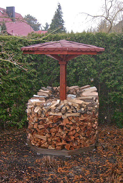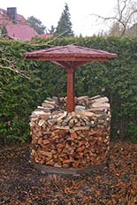 Damit Sie ihr Kaminholz in der Nähe ihres Hauses lagern können, haben wir eine dekorative Unterstellmöglichkeit in Form eines Pilzes gefertigt. Die Bodenplatte, Stiel und Dachkonstruktion ist aus massivem Lärchenholz, wetterfest imprägniert hergestellt, das Dach ist mit Dachpappe gedeckt.